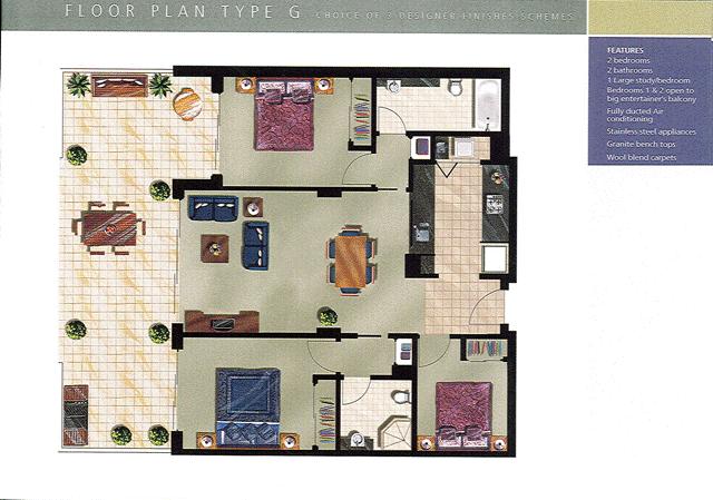 The apartment has a central living area with 2 good sized bedrooms featuring direct access onto the balcony for your personal entertainment. There is an additional 3rd bedroom or multi media room for countless usage options. Appointments include fully ducted air conditioning unit, stone bench tops, stainless steel oven, dishwasher and clothes dryer.Recently renovated, new carpets, a fresh coat of paint, lights, ceiling fans and window furnishes.